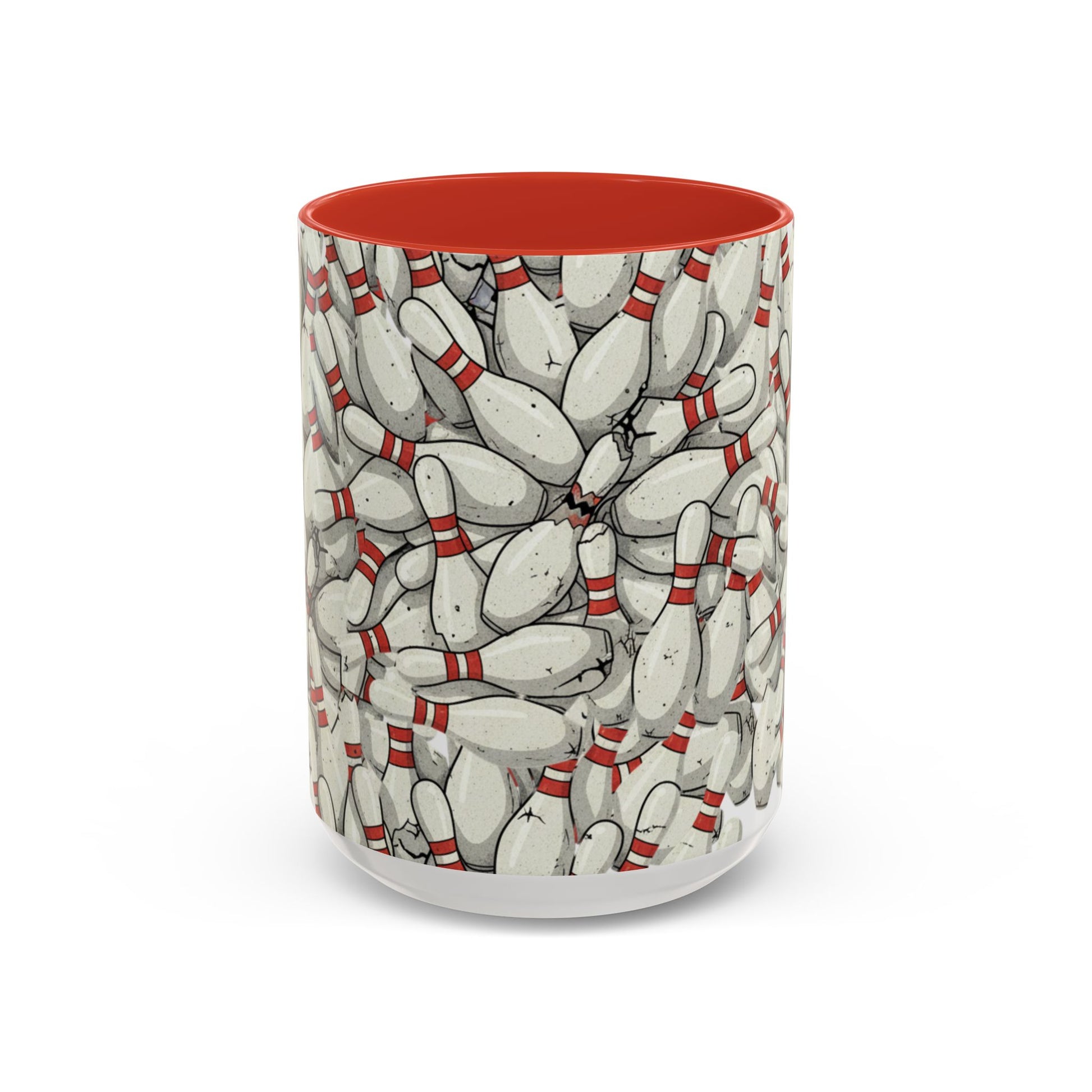 Bowling Pins Pattern Accent Coffee Mug – Red Interior Handle, 11/15oz